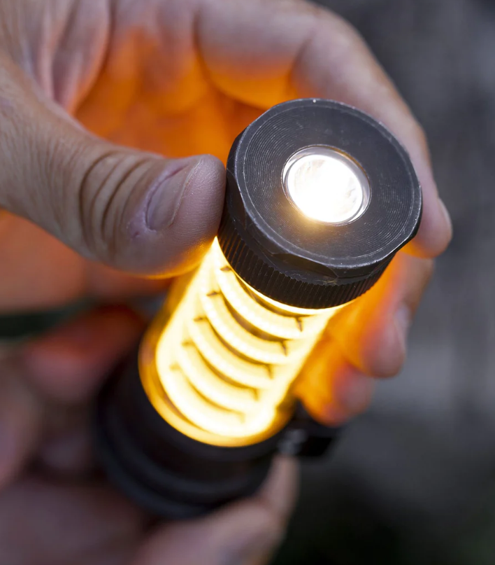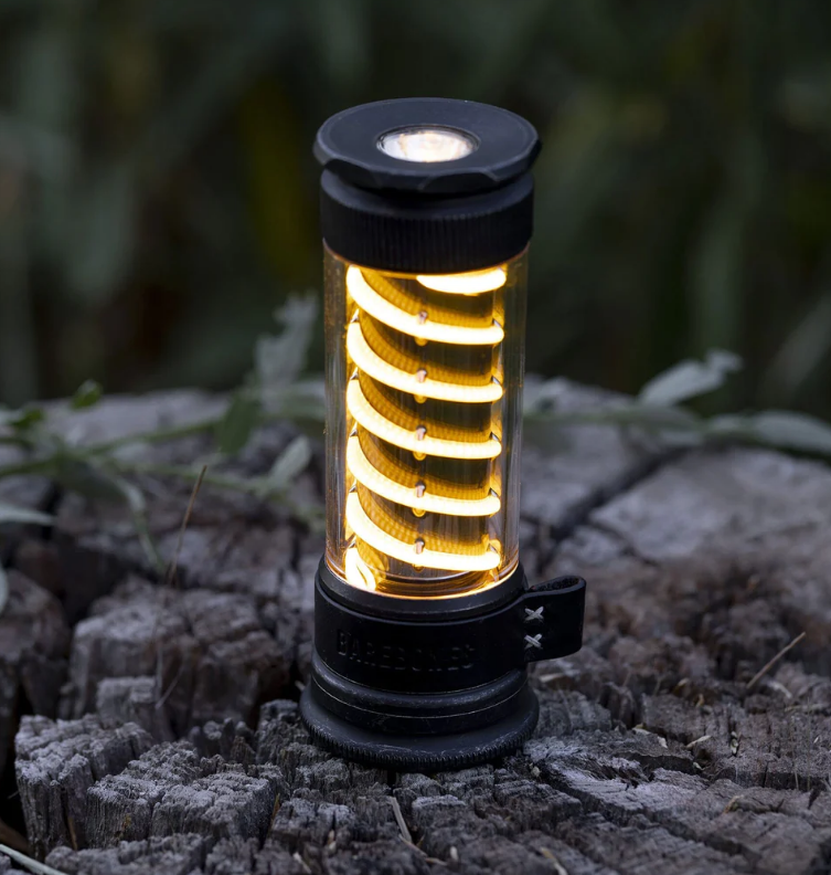 Der Barebones Light Stick Tumbled Steel bietet ein gemütliches Aussehen mit einer multifunktionalen Funktion, sowohl als Laterne als auch als Taschenlampe.