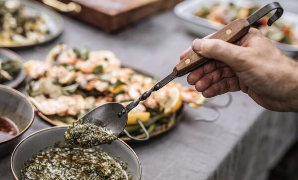 Der Barebones Cowboy Grill Kochlöffel ist ein klassischer Kochlöffel, der für Komfort und Sicherheit bei der Arbeit mit Feuer und heißen Kohlen entwickelt wurde. Der Löffel ist aus handgeschmiedetem Edelstahl gefertigt. Der Griff ist aus glattem, natürlichem Walnussholz gefertigt. Dies sorgt dafür, dass der Griff bei großer Hitze gut kühl bleibt. Der Barebones Cowboy Grill Kochlöffel kann mit dem Barebones Cowboy Fire Pit Grill kombiniert werden. Der Löffel kann sogar an diesen Grill gehängt werden.