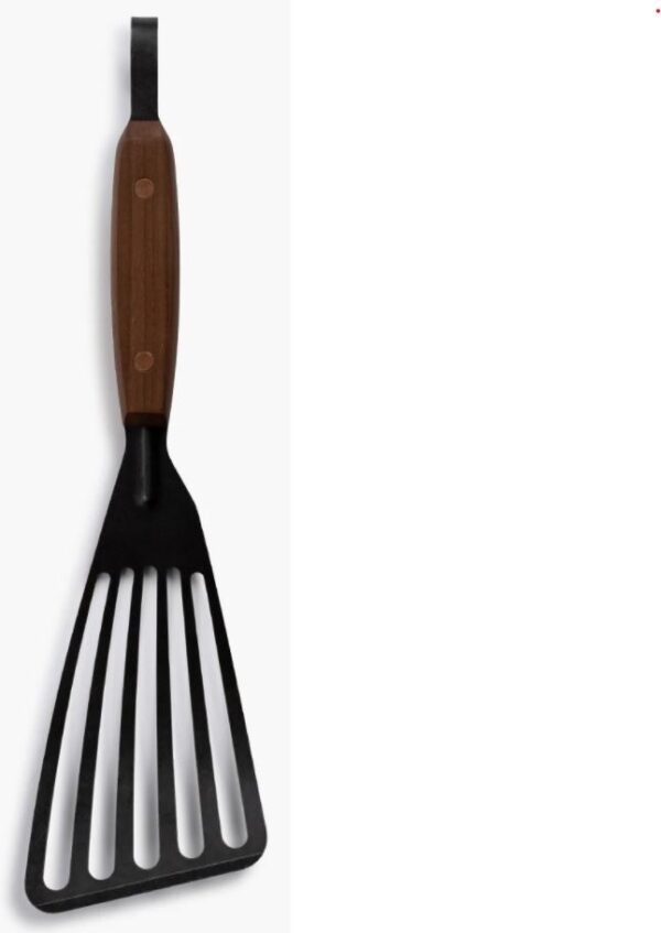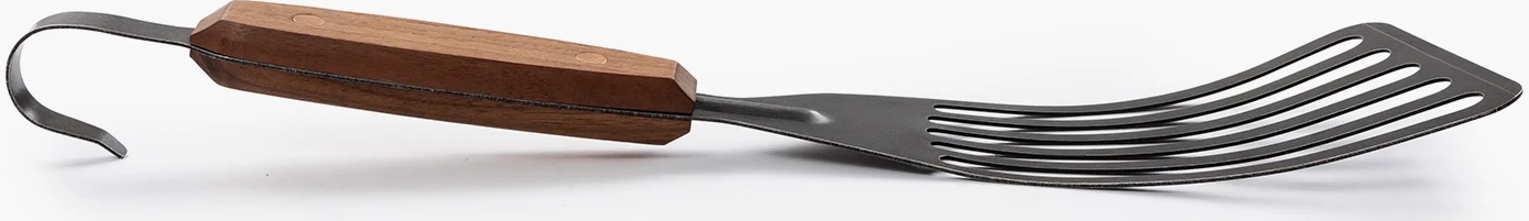 Mit dem Cowboy Grill Fischspatel können Sie empfindliche Fische und andere Speisen einfach und präzise wenden. Der Spatel lässt sich einfach an das Cowboy Fire Pit Grill System hängen. Der Spatula ist aus rostfreiem Stahl gefertigt und hat einen glatten Griff aus Walnussholz. Trotz der Hitze beim Kochen bleibt der Griff kühl. Sicherheit und Komfort wurden bei der Entwicklung dieses Spatels sorgfältig berücksichtigt.