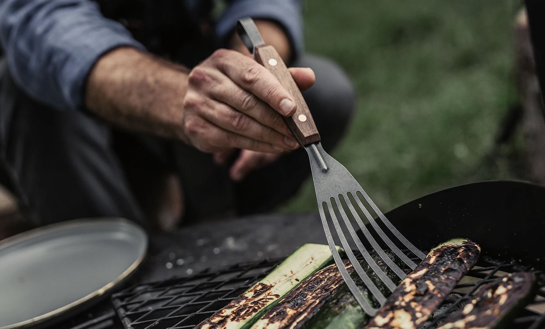 Mit dem Cowboy Grill Fischspatel können Sie empfindliche Fische und andere Speisen einfach und präzise wenden.