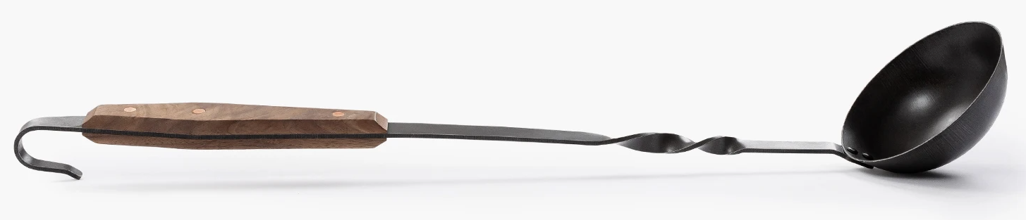 Die Barebones Cowboy Grill Ladle ist eine Schöpfkelle aus rostfreiem Stahl, die länger ist als die durchschnittliche Schöpfkelle und somit die Sicherheit bei der Arbeit um Feuer und heiße Kohlen gewährleistet. Die Ladle lässt sich gut in Kombination mit dem Cowboy Fire Pit Grill verwenden. Die Ladl kann daran aufgehängt werden, wenn sie nicht gebraucht wird. Die Cowboy Grill Ladle ist aus rostfreiem Stahl gefertigt und verfügt über einen glatten, natürlichen Walnussgriff, der bei großer Hitze kühl bleibt.