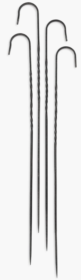 Indem Sie Ihre Spieße, Würstchen, Hähnchen-Satay und Gemüse auf diesen Stift legen, stellen Sie sicher, dass sie perfekt zubereitet und leicht zu essen sind. Die Grill Skewers sind handgefertigt und geschmiedet. Der sorgfältig gestaltete Haken am Ende sorgt für eine einfache Aufhängung und Aufbewahrung, wenn die Grillspieße nicht in Gebrauch sind.