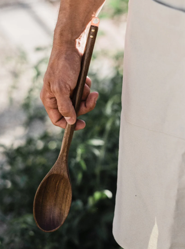 Dieser hölzerne Kochlöffel von Barebones ist nicht nur eine stilvolle Ergänzung Ihrer Küchenutensilien, sondern auch eine sehr praktische. Das Walnussholz ist hart und fest, kratzt aber nicht, weshalb es sich gut für kratzempfindliches Kochgeschirr eignet. Mischen Sie Zutaten, rühren Sie Soßen um und kochen Sie schmackhafte Speisen – der Holzlöffel kann überall eingesetzt werden!