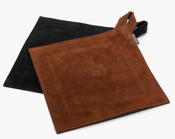 Die Barebones Leather Hot Pads aus Wildleder verhindern die Übertragung von Hitze und schützen Ihren Tisch, Ihre Arbeitsplatte und Ihre Hände.