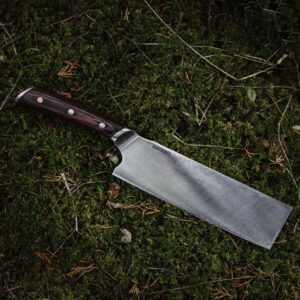 Die Nr. 7 Nakiri Knife von Barebones ist ein japanisches Gemüsemesser für die Küche, geeignet zum Schneiden und Hacken von schwierigem Gemüse.