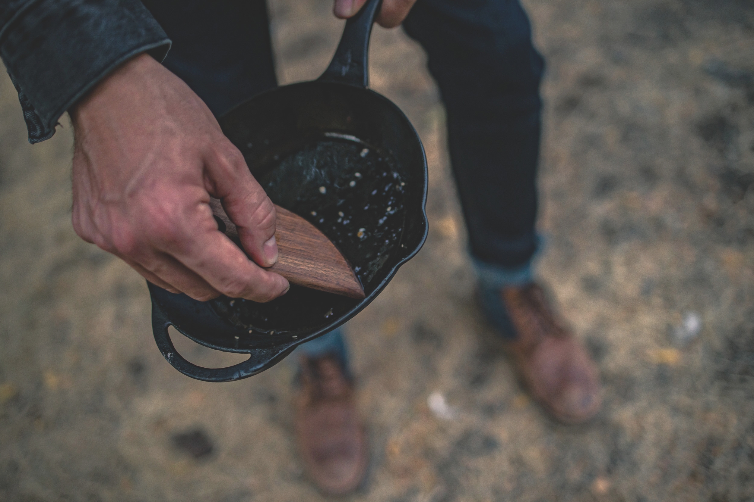 - Verwenden Sie lieber keine Pfannenwender und kein Besteck aus Eisen in Ihrer Pfanne, da harte Materialien das Gusseisen beschädigen können. Entscheiden Sie sich stattdessen für Spachtel und Besteck aus Holz, Silikon oder Gummi.